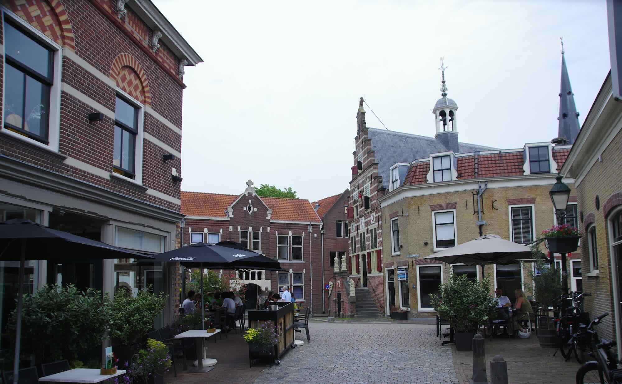 nĂ€chsten kleinen Ort, Breukelen, der groĂe Marktplatz, voll StĂŒhle,