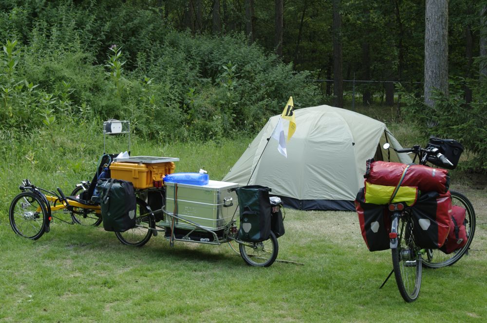 | Wir bauen unser Zelt auf. Auch hier hatten wir Glück, alle Plätze mit Nummern ordnungsgemäß vorhanden. Nur unser Platz hatte noch keinerlei Nummer. | ![]() | |