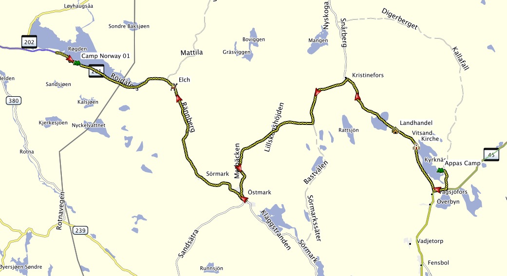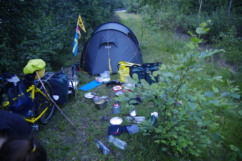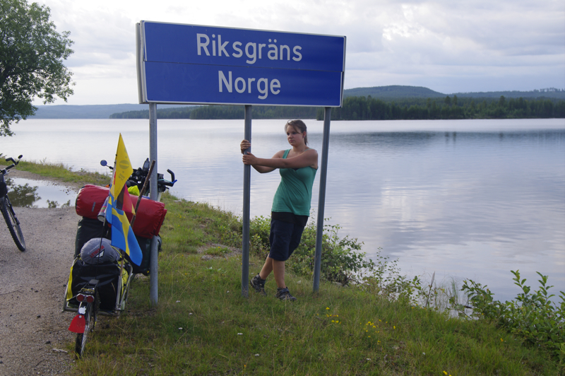 | Wir starten heute in Richtung norwegischer Grenze. Das Wetter ist gut. Auf dem Campingplatz holen wir uns noch die letzten Infos über die Straßenbeschaffenheit. Ein Berg Richtung Umspannwerk soll es in sich haben, wird uns gesagt. Na gut, für ein Rad ohne Gangschaltung vielleicht, aber der Berg ist nun für uns nur noch ein kleiner Hügel. | ![]() |