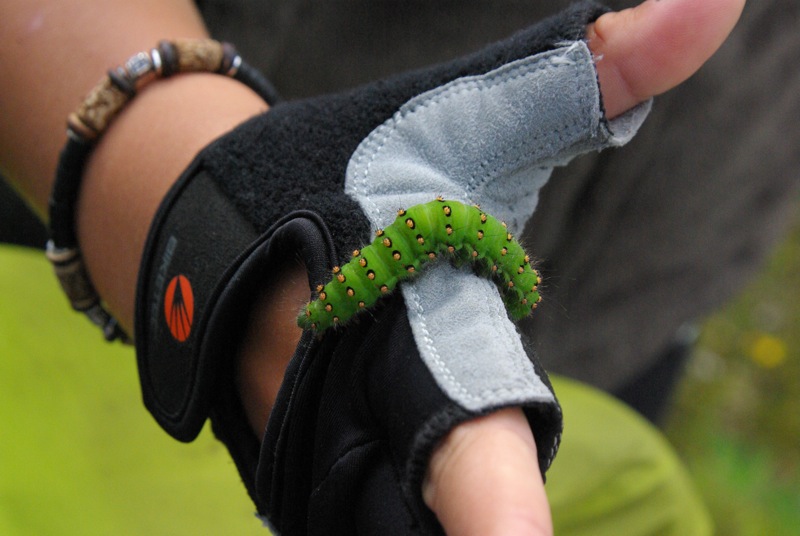 | Lea, die Raupenretterin - noch schnell von der Straße gefischt | |