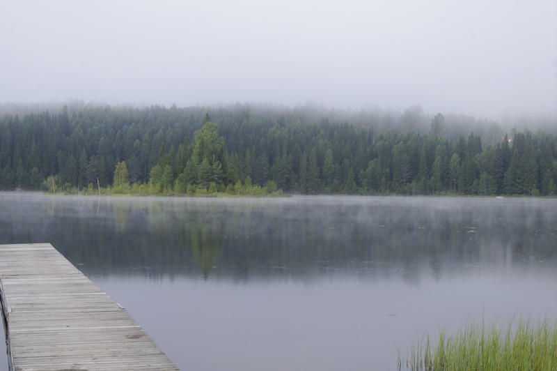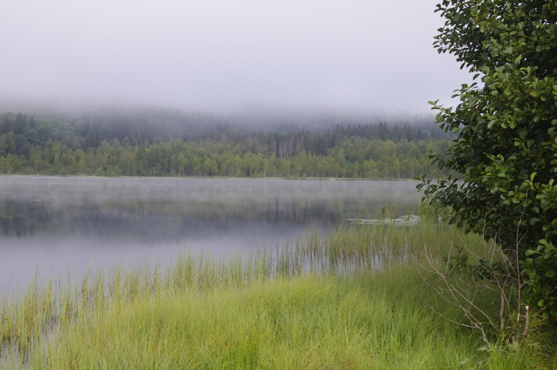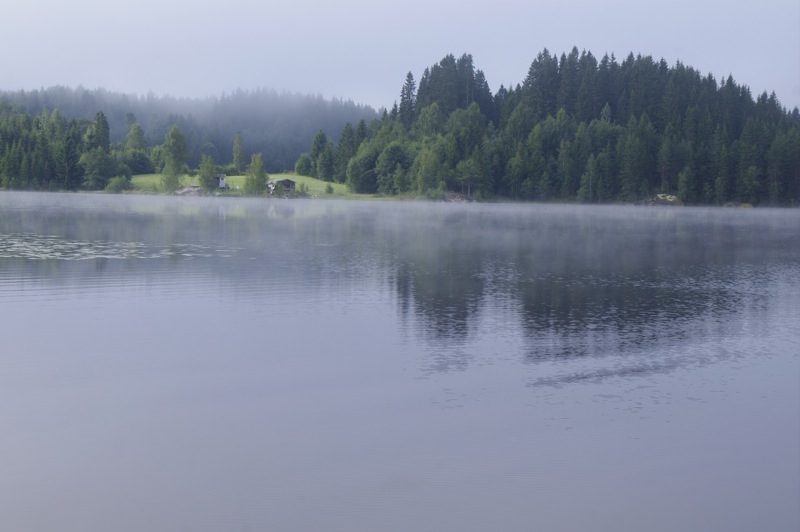 Nachtbaden hinlegten) war der See vor uns in dicken Nebel gehüllt.