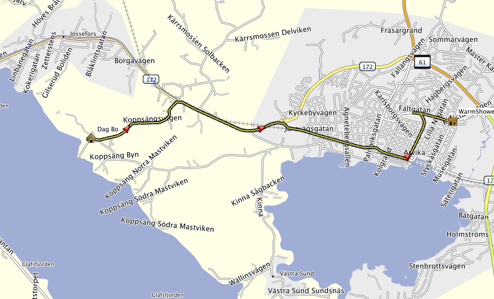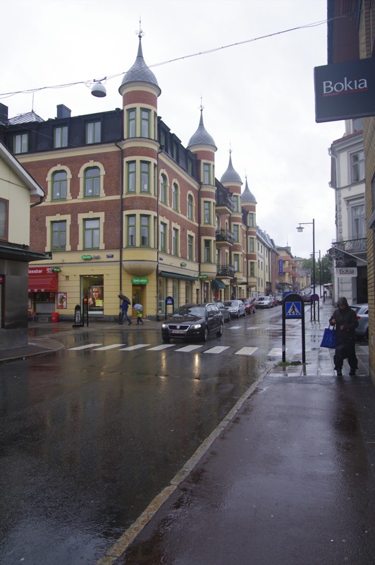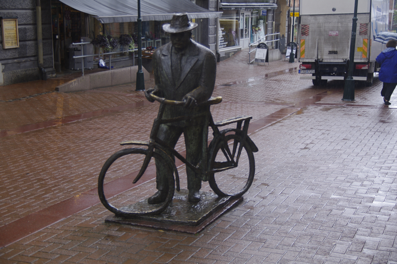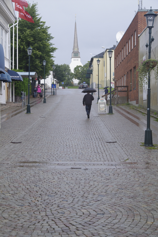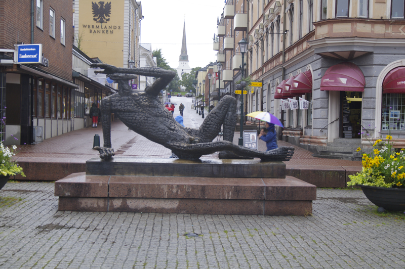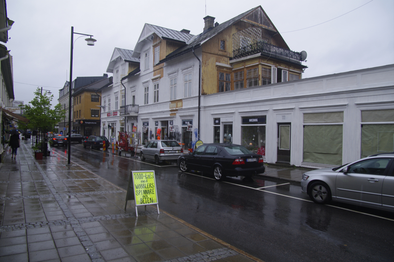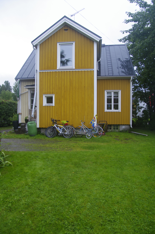 transportieren lassen. Leichter Regen ist angesagt. Dauerregen. Regenklamotten und auf gehts. Nach Arvika wollen wir heute, das ist nicht weit weg. Dort bei Anita und Ihrem Mann können wir allerdings nur im Garten übernachten, da sie selbst in Urlaub sind. Toiletten gibt es gegenüber in dem großen Supermarkt, der jeden Tag von 8-22 Uhr geöffnet hat. Es sind nur 8 Kilometer, nicht mal warmgefahren, da sind wir schon da. Dank GPS finden wir die Straße sofort. Aber die Hausnummern? Es gibt keine. Nur Briefkästen. Na ja, die 4 sollte einfach zu finden sein. Das zweite Haus am Straßenanfang. Ja, Briefkästen genügend vorhanden. Wo ist der Name? Ja hier muss es sein, keinAuto im Carport und niemand zuhause. Wie schieben die Räder auf das Grundstück. Die Tür geht auf, ein Mann kommt raus. Hello! Ich weiß von Euch, Anita hat angerufen und mir bescheid gesagt. Er spricht gutes englisch. Allerdings ist die Hausnummer hier im Ort -eine Ausnahme- das erste Haus. Eine 2 gibt es nicht. Tomas (ohne h) ist der Nachbar. Wir suchen uns einen Platz für das Zelt. Wenn Ihr irgendetwas benötigt einfach fragen. Wir erklärten Ihm, das wir gleich in die Stadt gehen wollen. Er lud uns dann heute abend zu Kaffee und Kuchen ein. Wir nahmen die Einladung an. So kann man dann am besten das Leben vor Ort sehen. Jetzt aber erstmal in die Stadt. Der Regen nimmt nicht ab, sondern eher zu. Cafes gibt es und ein paar Läden, in denen man ein bißchen gucken kann. Shoppen ist ja nicht so drin, denn wir haben Platzprobleme. | ![]() |