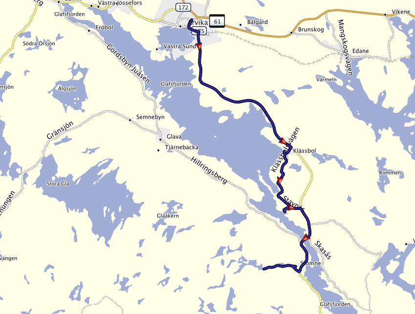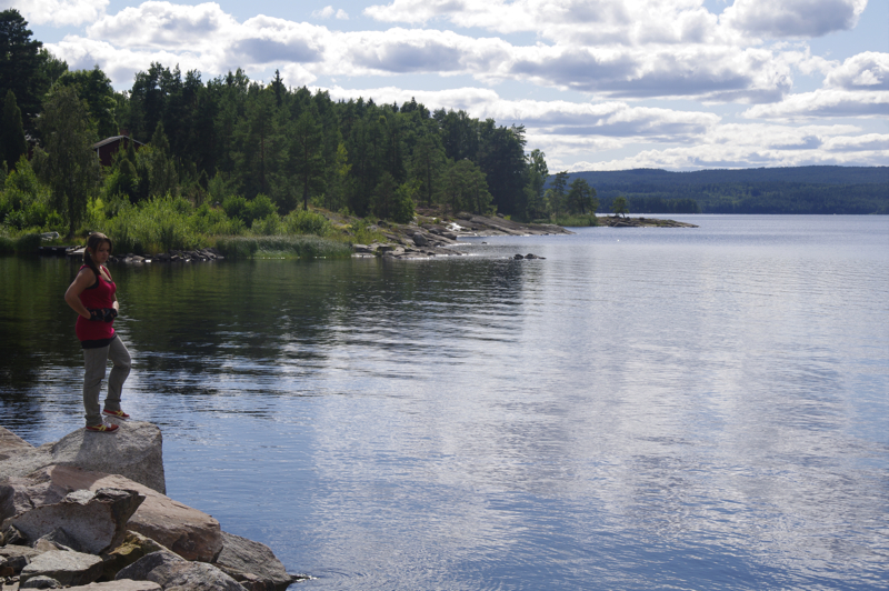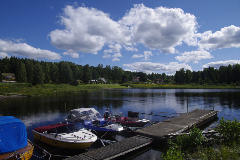 Frühstück im Haus. Gemütlich ist es, ganz relaxt. Heute fahren wir bis nach Stömne. Dort geht es am Samstag mit dem Bus zurück. Der Urlaub ist fast vorbei. Wir können alles im Haus benutzen. Wieder eine schöne Begegnung mit netten Menschen. Vielleicht sieht man sich ja mal wieder. Wir fahren los. Arvika ist eine realtiv große Stadt. Am Ortsrand Volvo mit Radladerbau. Aber ruckzuck ist man wieder in der Natur. | ![]() |