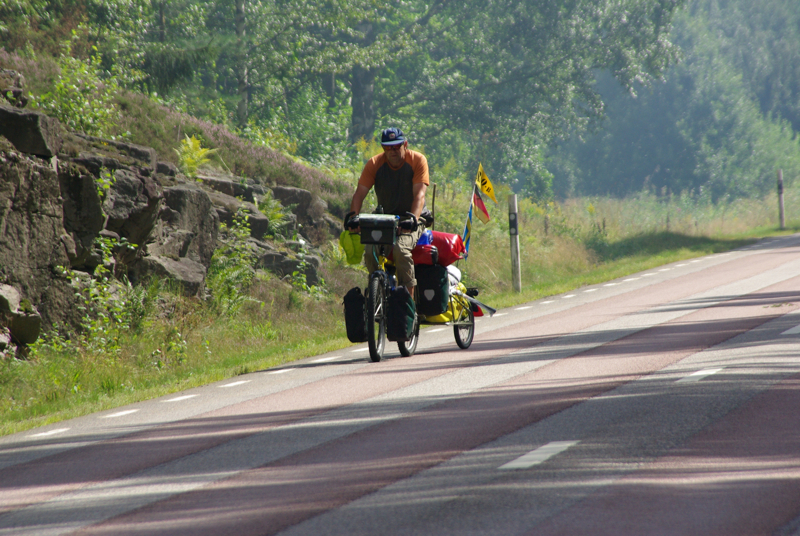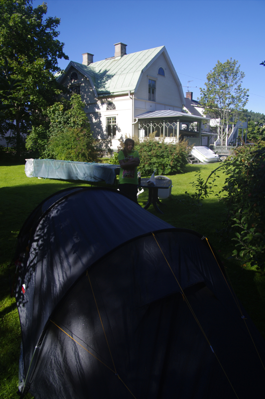 | Wir erreichen Stömne bereits gegen Mittag. Erstmal tauschen wir unser Zelt. Das ging unproblematisch vonstatten. Auf der Karte hatte ich in ein paar Kilometern Entfernung einen Platz ausgemacht. Dort fahren wir hin. 3 Kilometer bergauf, ich betone Berg. Denn am nächsten Tag mußte ich feststellen, daß das große Zahnritzel hinten (36er) verbogen war. Klar, bedingt durch die Gewichtsersparnis - viel ausgefräßte Fläche- ist das Ritzel müde geworden. Macht nichts, morgen geht es nur noch bergab. | |