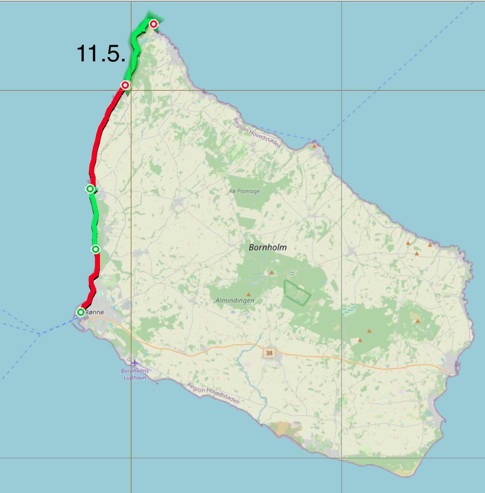 Meine Strecke heute, noch eben den nördlichsten Punkt passiert