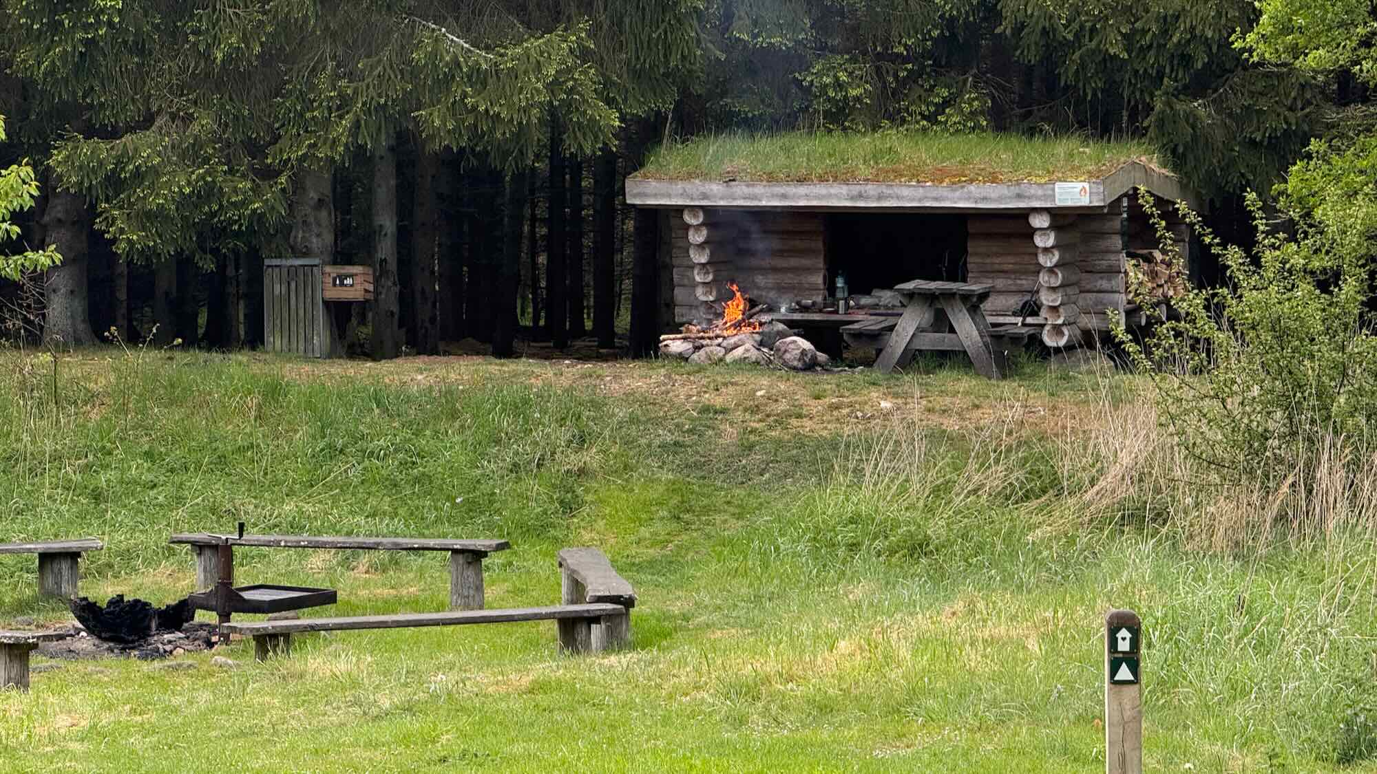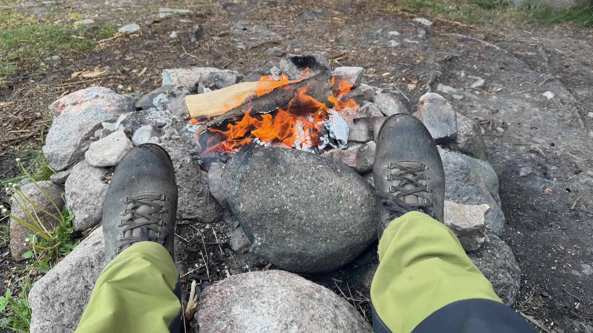noch ein Feuer entzündet und schon fängt es an zu regnen.
