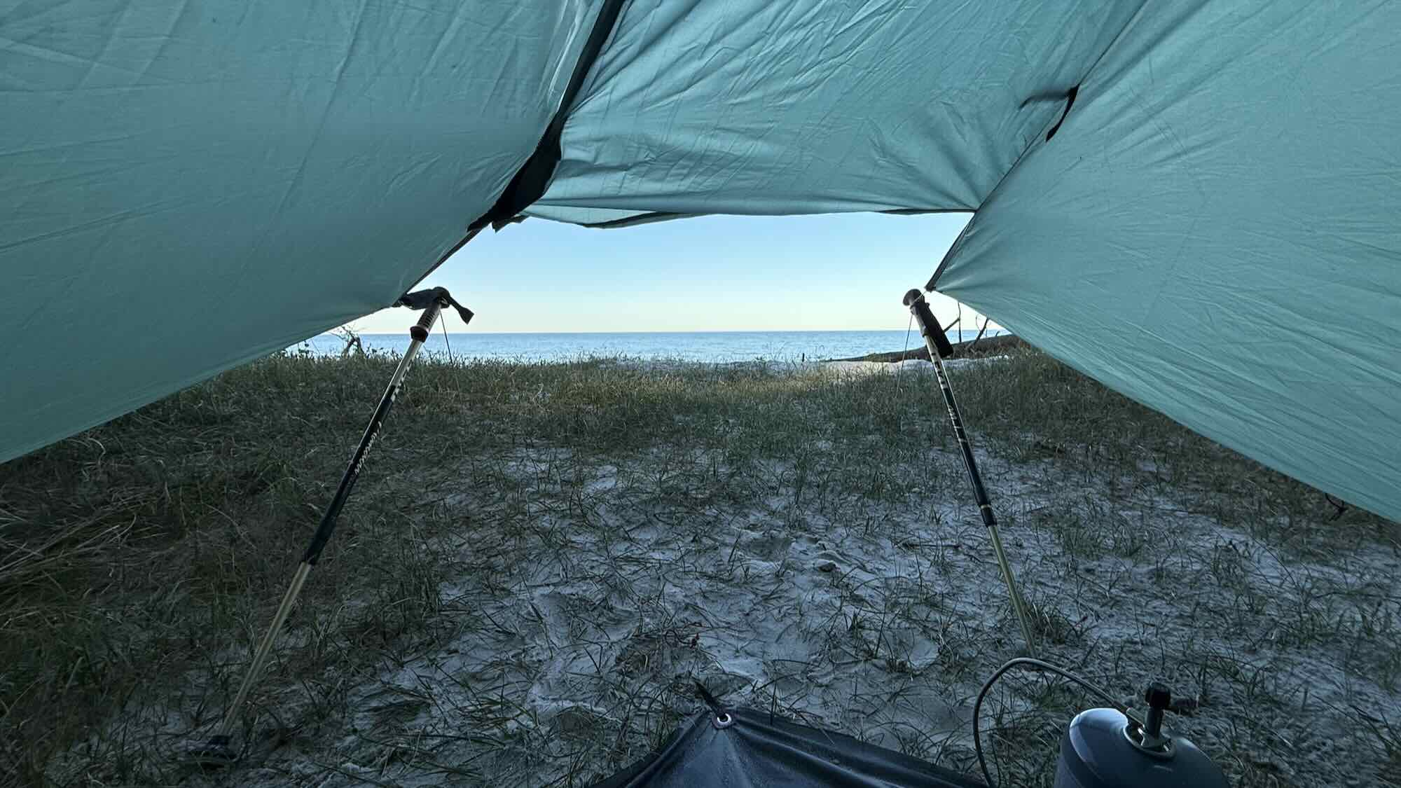 nicht so sehr kalt in der Nacht und ich habe mit offenen Vordach geschlafen nur mit Fliegenschutz