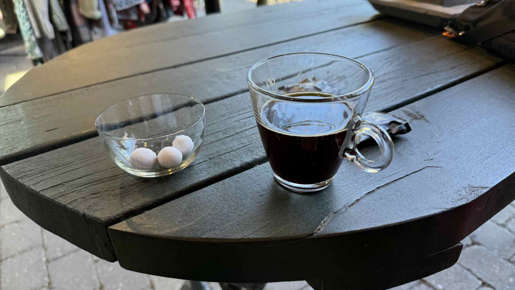 Aber ich sollte im Nebengeschäfte nachfragen, auch Bekleidung, aber da könnte ich Kaffee bekommen.