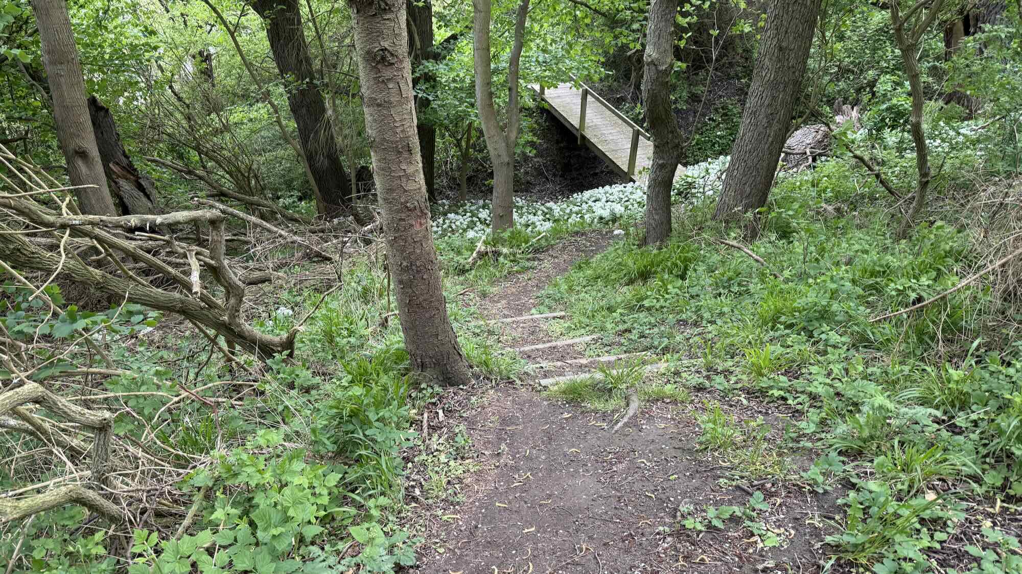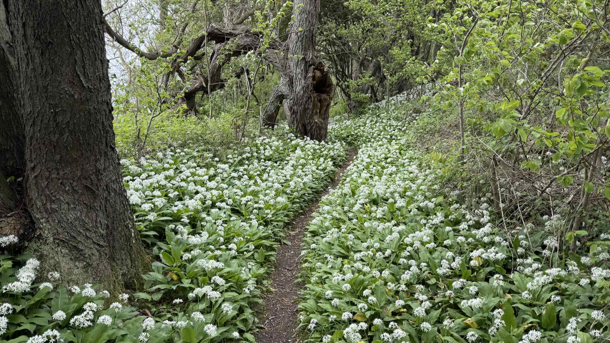 Unterwegs stoße ich dann noch auf einen kleinen Wasserfall, umrahmt von Bärlauch.