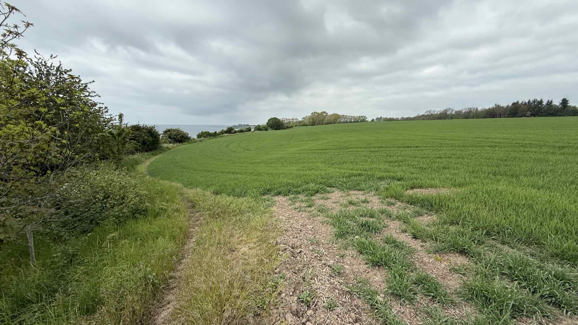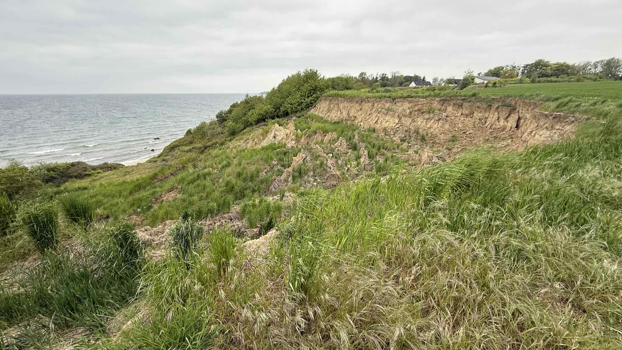 bin ich hier oben am Feldrand und da sehe ich einen Steilhang. Da