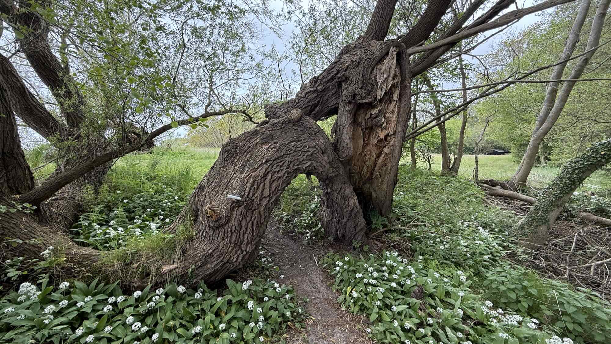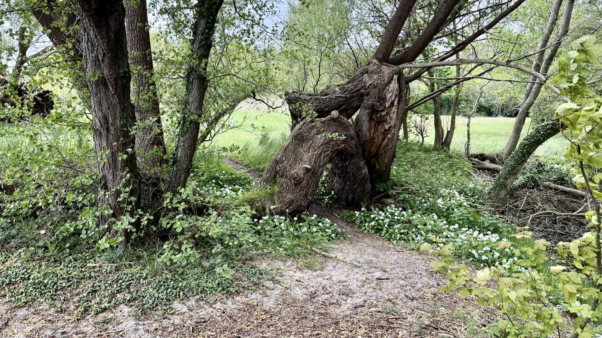Meer eine Baumgruppe, die den Weg versperrt. Ein großer Baum vom