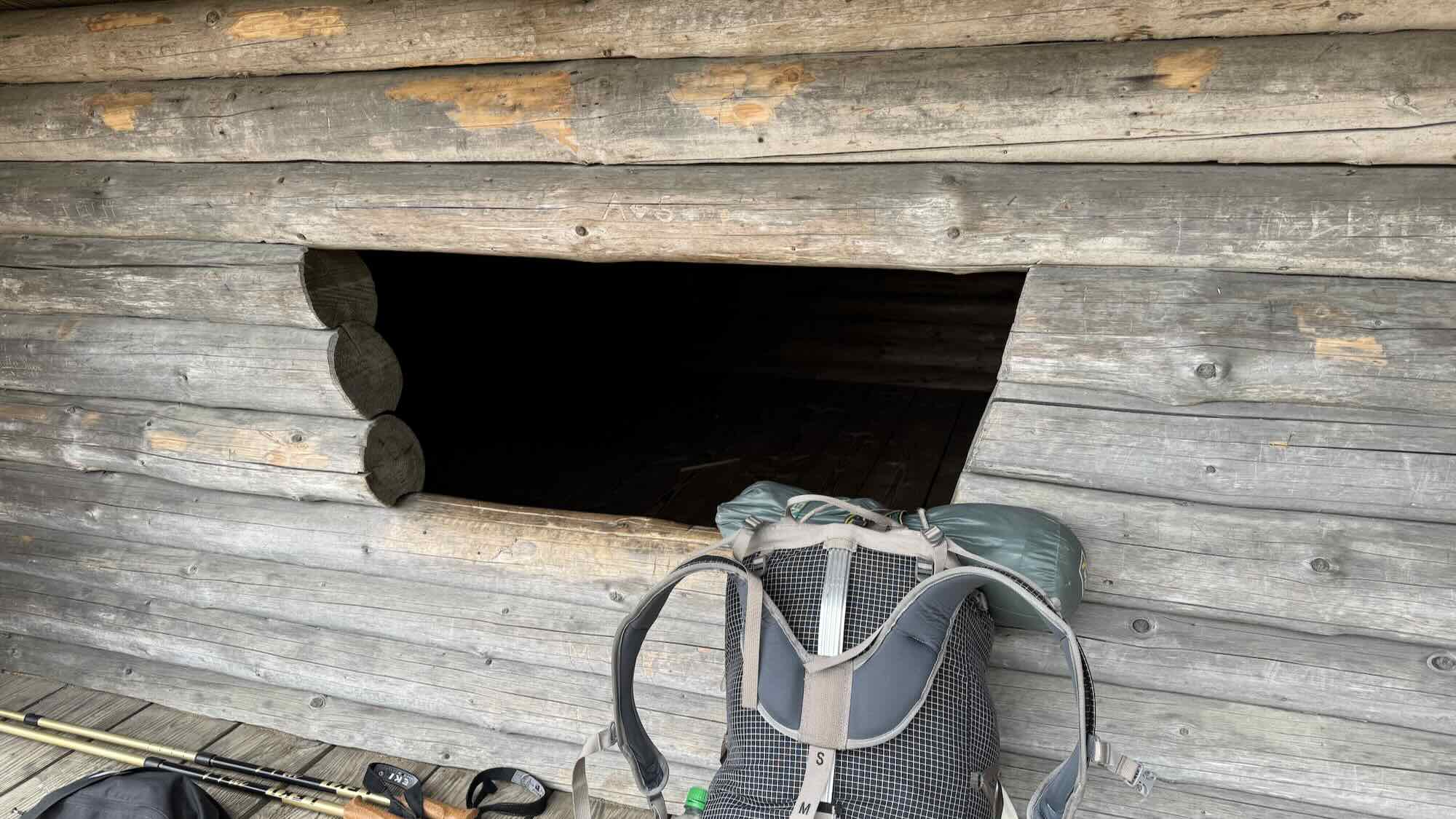 Ich hatte mich vor dem Shelter auf dieser Ablage niedergelegt, gedöst und war wohl richtig eingeschlafen.